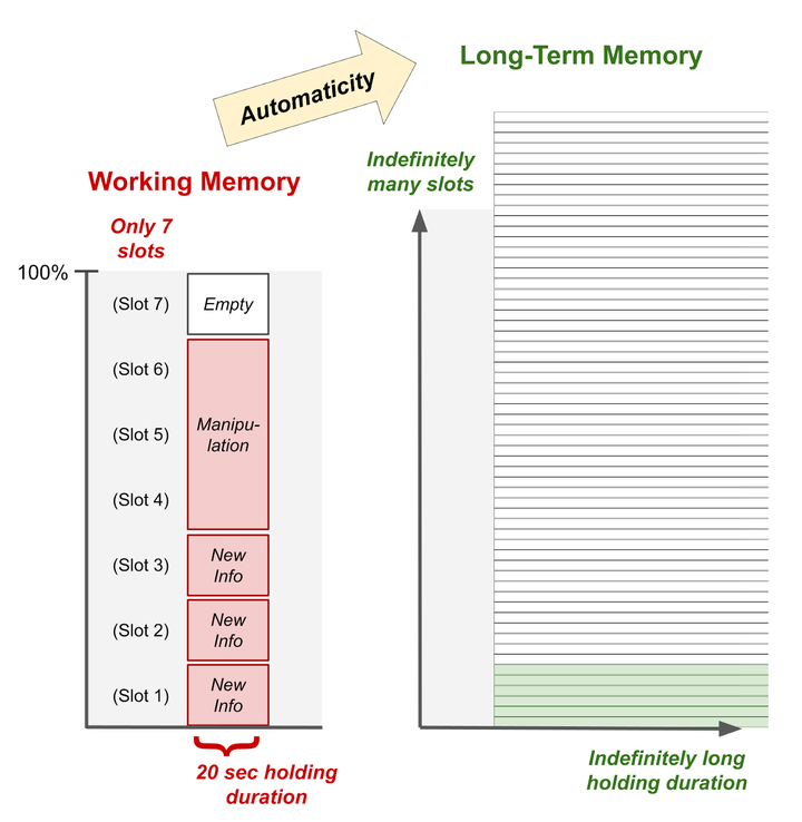 | 工作记忆是有限的,但长期记忆是无限的