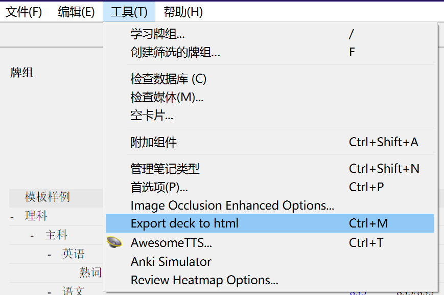 点击主页面-左上角-工具-Export deck to html