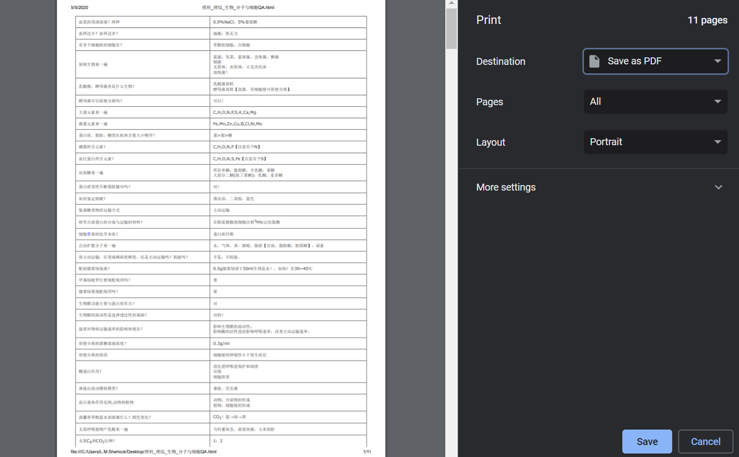 效果:可以带图片、可以保留文本样式,保存为pdf后打印即可。并且问题和答案分为左右两列,方便对折自测。
