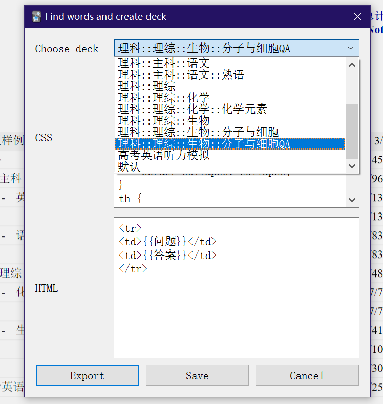 工具:Anki插件Export deck to HTML、文本编辑器、浏览器