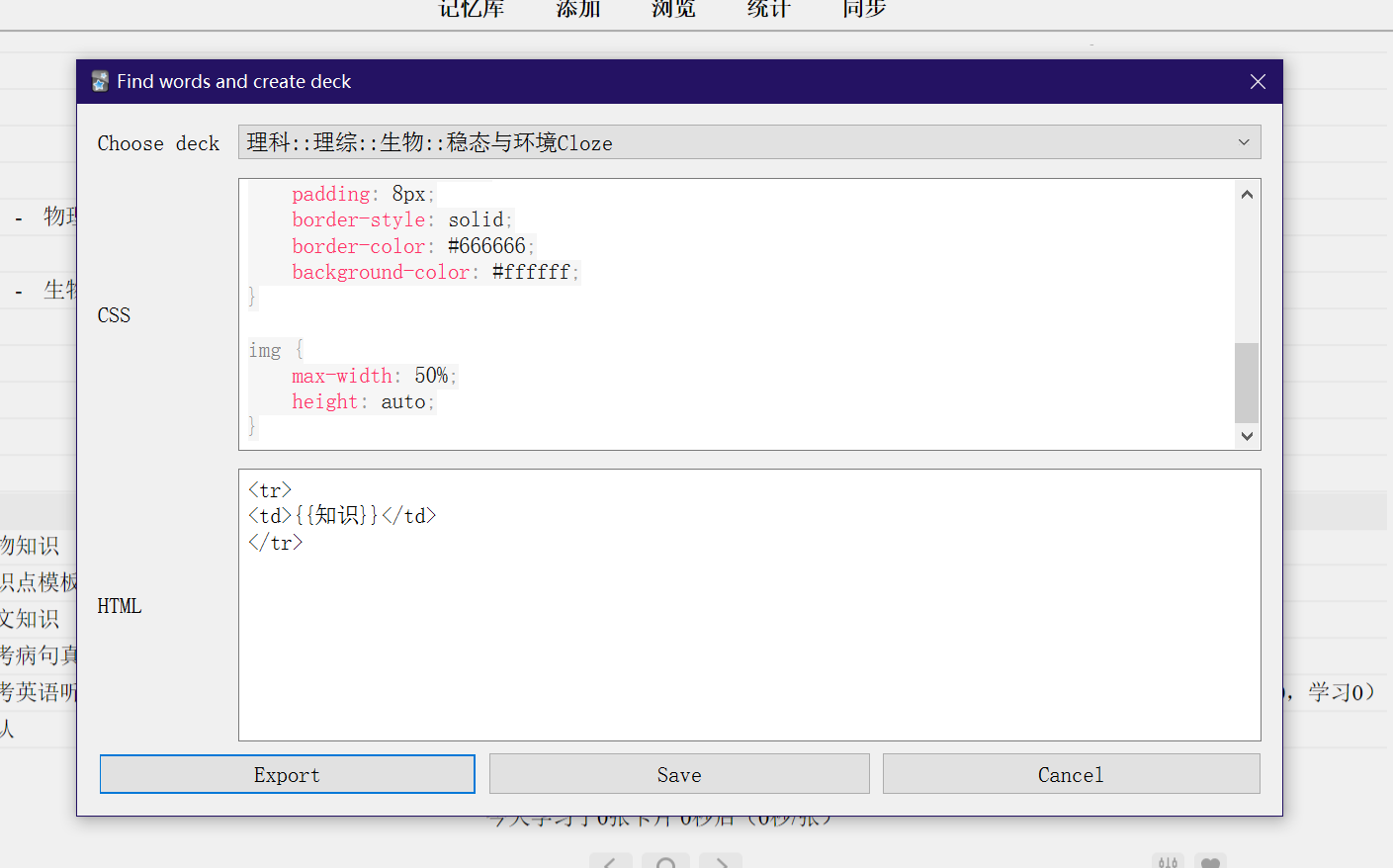 本方法原理是利用插件,将卡片字段通过 html 和 css 重新组织为表格,然后导出后另存为 pdf 便于打印。根据不同的笔记模板,只需要制定对应的 html 和 css 即可。