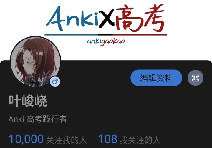连续创作两年多终于万粉,这蜗牛速度也是没谁了 233。现在达到了这个目标,也终于可以理直气壮地说:“涨粉?I don't care!”。所以接下来的工作重心就是传火和解密我的 Anki 高考牌组啦!