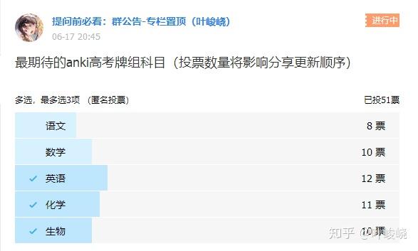 根据两个群的投票,Anki 高考牌组的解密顺序如下: