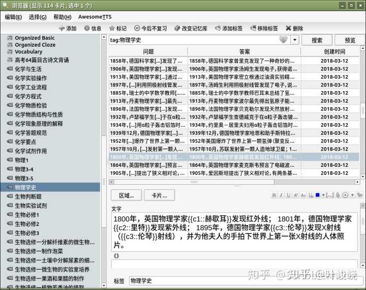 高三一年,我和同学用手机+电脑,做出了 1 万 5 千多张复习卡片[4],覆盖语文、英语、物理、化学、生物 5 大学科,并且每张卡片都由 Anki 安排复习,帮我和同学节省了大量复习时间!