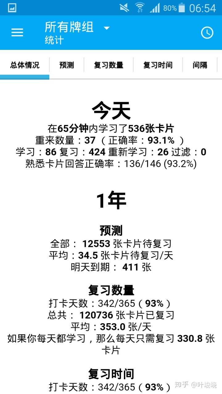 是不是很简单?给大家看看我高三时使用 Anki 的统计数据: