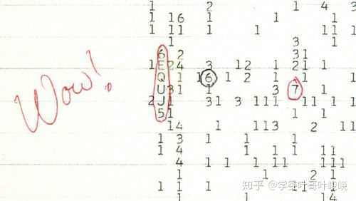 1977 年夏天,在寻找外星智能的时候,SETI 的研究人员发现了一个来自射手座的不寻常的无线电信号。在宇宙空间微弱的低水平噪声中,信号是极不可能出现的。低概率标志着高意外。天文学家 Jerry Ehman 在打印输出上圈出6个与信号相对应的字母,并在旁边写上了「Wow!」(哇!)。