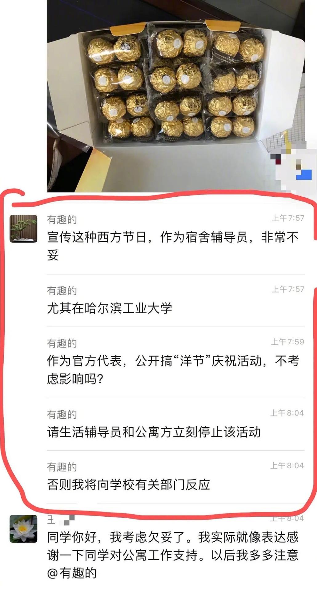 最新进展:哈工大回应学生欲举报宿管感恩节送糖是“过洋节” :双方均出于好心善意