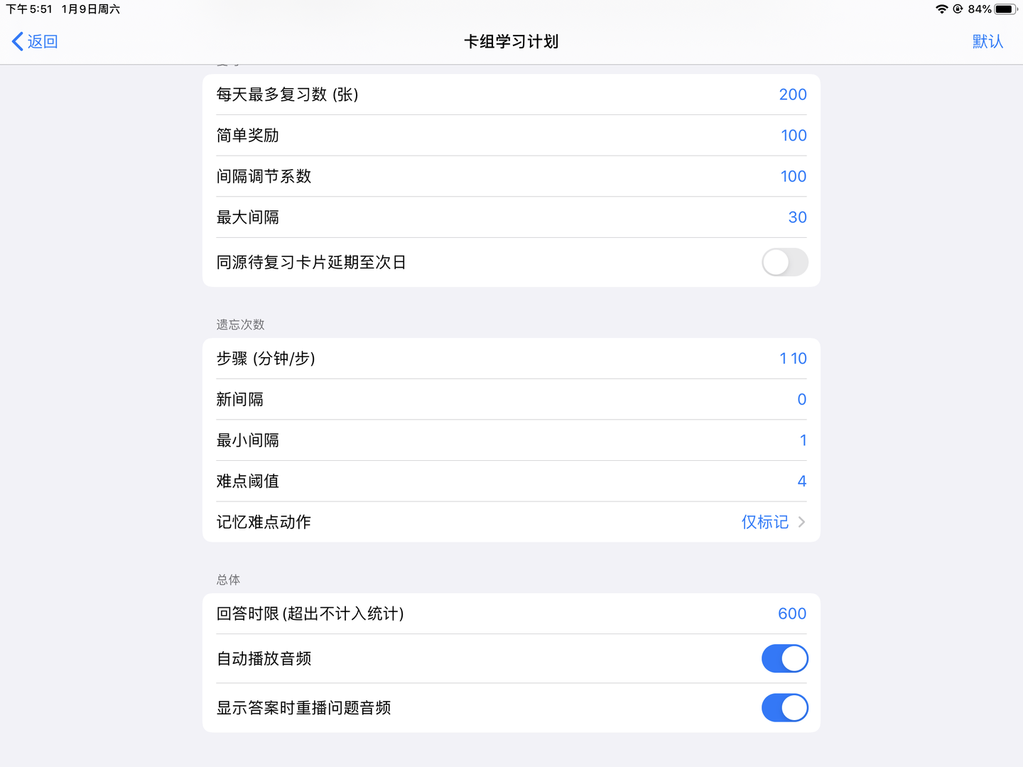 我把简单间隔设置成1天,初始简易度是200。第一次选择简单时间隔是1天,而第二次简单选项的时间间隔变成了4天,这是为什么?不是应该是2天吗?(1x200%=2)下面附上具体参数设置,大家帮我看看是哪里设置的有问题吗?还是我对anki的算法理解有误呢?求指正!