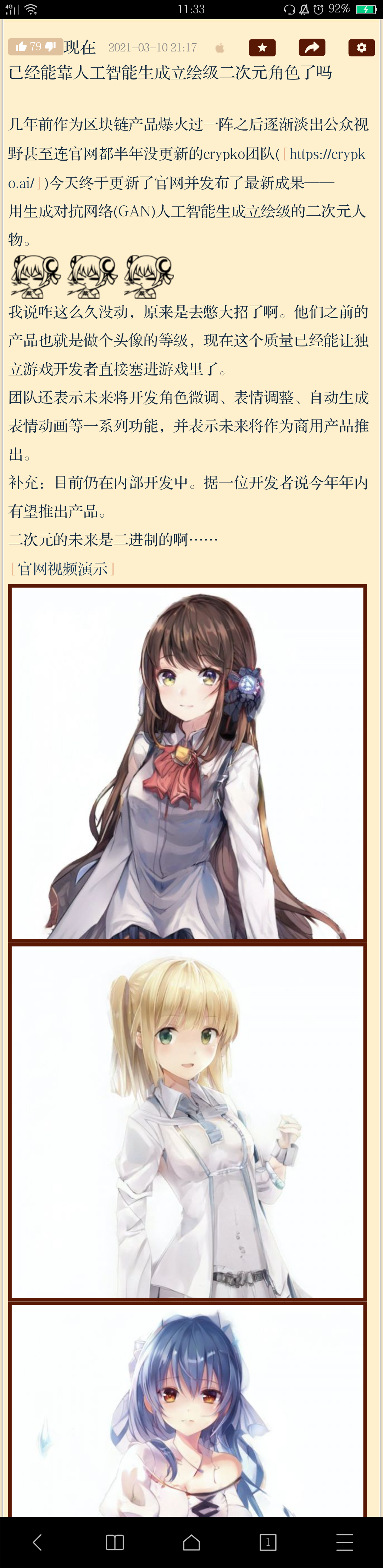 问题描述 时隔两年,以为制作团队凉了,没想到居然已经修炼到这个程度了!我回头看了看自己两年前在 crypko 合的头像:对比一下,这个进步已经是从蒸汽火车变成高铁了吧 233不知道之前那个基于区块链的游戏还做不做了?看好! ← 返回目录
