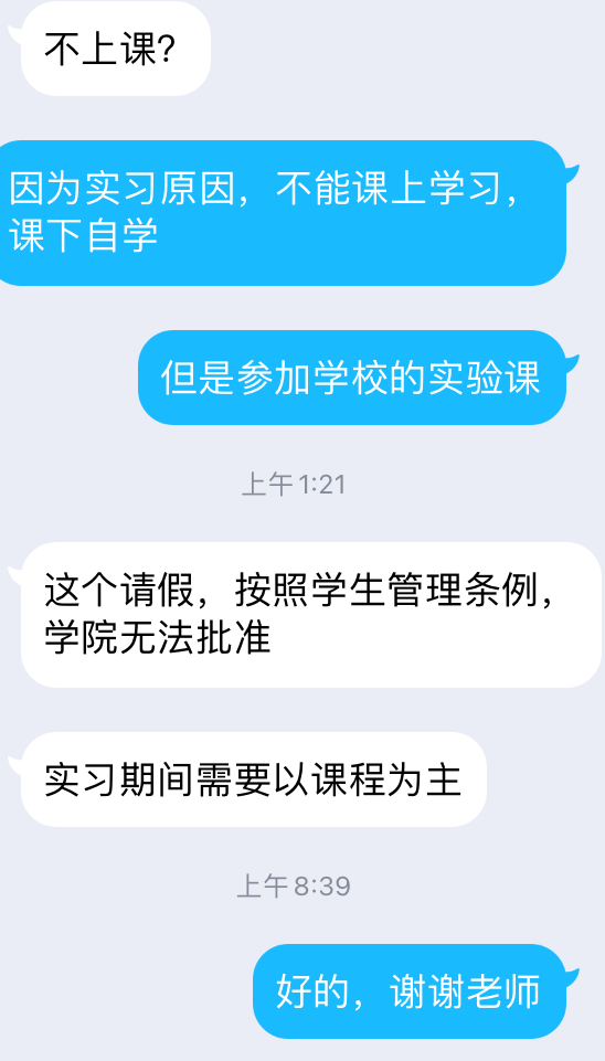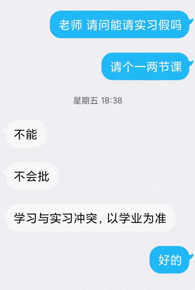 一边提供实习请假文件,一边不许实习请假,一边还要查出勤,警告取消考试资格…服了