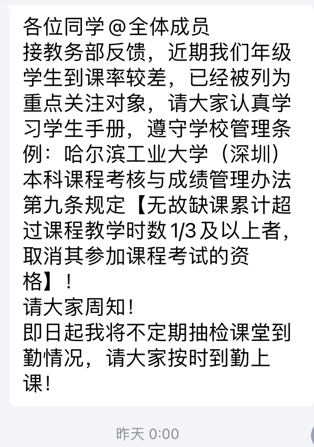 而学校并不批准,并且通知全员无故缺课有可能无法参加考试。