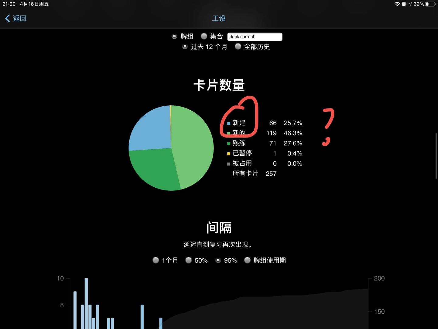 叶峻峣:Anki 统计数据怎么看?不过里面内容有点旧了,找时间会更新一下。
