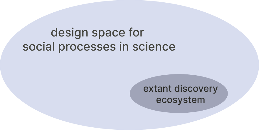 元科学的一个概念是,它关乎科学的微调,对同行评审或资助等社会过程进行渐进式调整。但我们以不同的方式构想元科学,相信截然不同且远胜一筹的社会过程是可能的,并且元科学的设计空间广阔且大多未被探索: