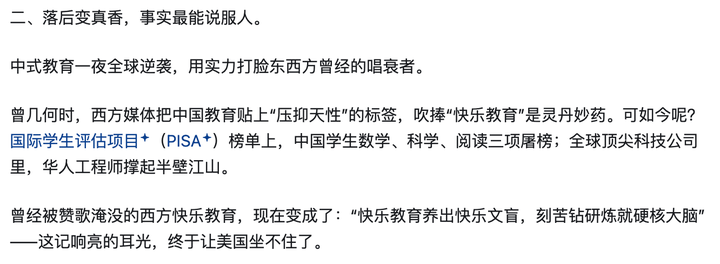 另外,用 PISA 成绩来吹中式教育也是老套路了。