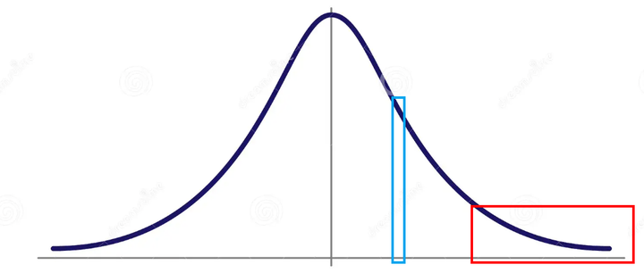 请问以下分布中,是蓝色的面积大还是红色的面积大?是蓝色的水平更代表平均水平,还是红色更代表平均水平?