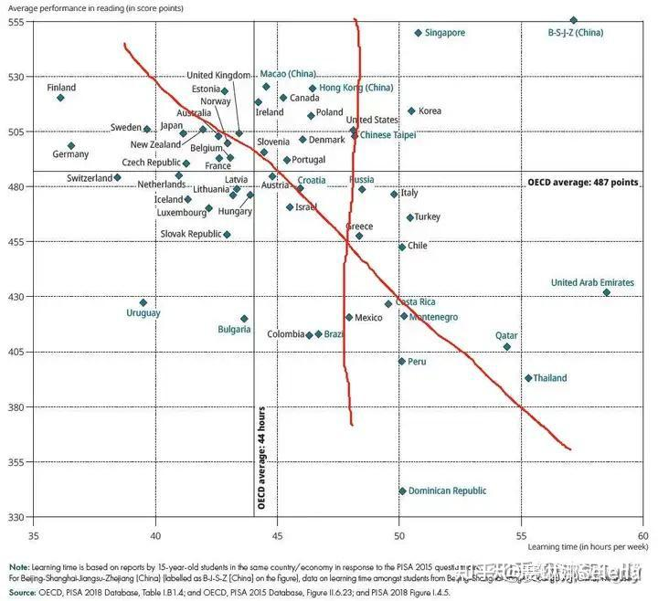更何况美国学生每周学习时长在一众发达国家里面还算长的了(48 小时左右,对比芬兰,只有 36 小时)。为什么不和这些国家比一比?