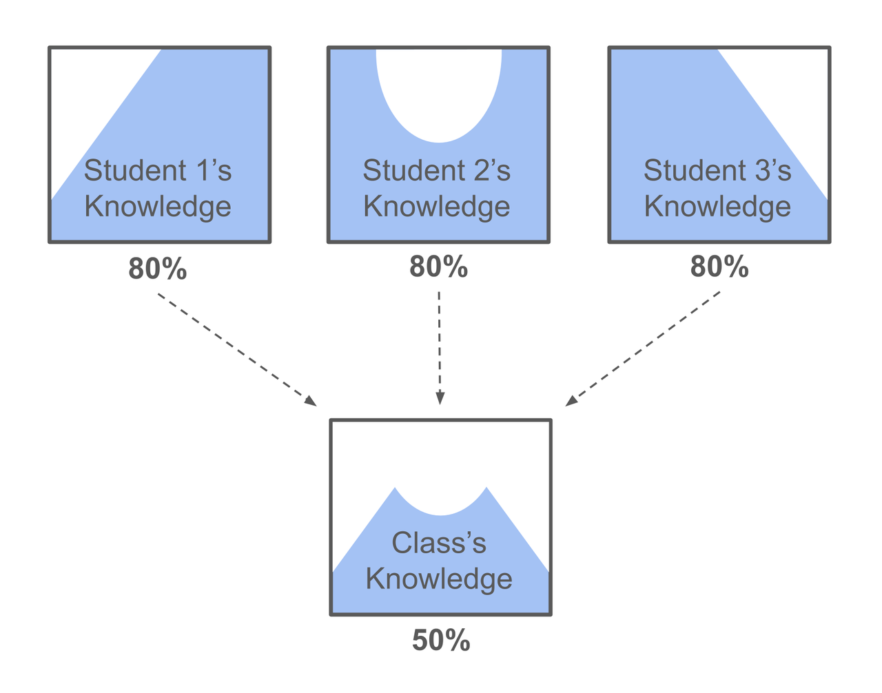 然而,当学生拥有多样化的知识画像时,要找到一种对班级所有学生都有效的问题类型,即使在最理想的情况下也极为困难,而在最糟糕(也是最常见)的情况下则完全不可能。即使教师选择了他们认为适合「班级平均水平」的问题类型,对许多学生来说往往过于困难,对另一些学生而言又过于简单(无论是哪种情况,对这些学生而言都是时间的无效利用)。