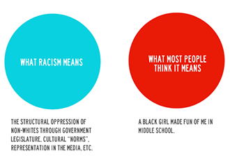 我最近了解到,社会正义领域所做的某种事,其实是有个专门术语的。但在此之前,先看一张来自 racism school 点 tumblr 点 com 的 png 图片。