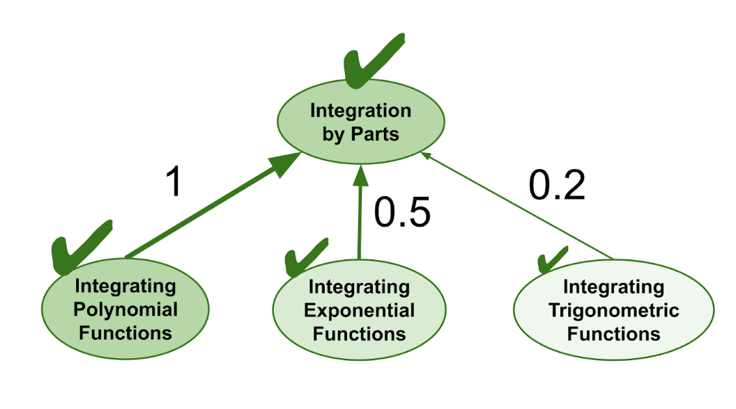 例如,在微积分中,高级积分技巧如分部积分要求你计算各种数学函数的积分,如多项式、指数函数和三角函数。但其中一些函数可能只出现在分部积分问题的一部分中。所以,如果你完成了一次分部积分的重复练习,你应该只获得对每个部分包含主题的一部分重复练习。