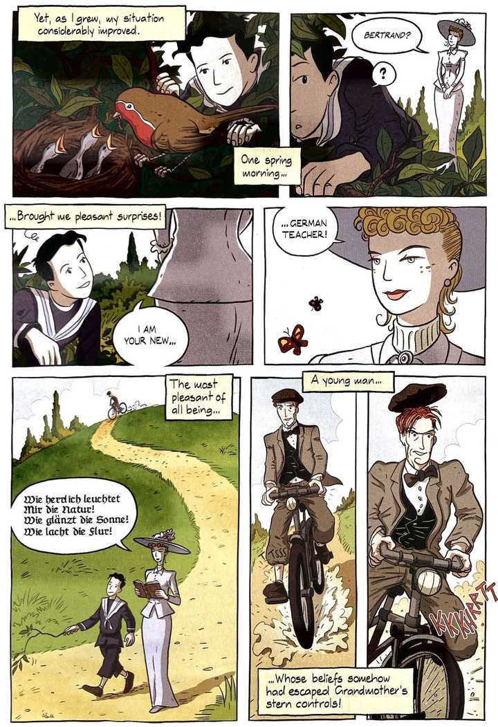 贵族式辅导跨越了不同王国和大陆,持续了数千年之久。如果我们将时间快进近 2000 年,我们会看到伯特兰·罗素,20 世纪无可争议的天才之一,他正是贵族式辅导的典型案例——由富有的祖父母抚养长大,他直到 16 岁才开始正式上学,并且拥有一系列轮换的导师,其数量堪比马可·奥勒留。其中许多人本身就是杰出的科学家和知识分子,例如,罗素的一位导师 J. 斯图尔特(J. Stuart),他本人就曾是开尔文勋爵(Lord Kelvin)(就是那个「开尔文」温标的命名者)的学生。罗素,得益于他详尽的自传,让我们得以清晰地了解贵族式辅导究竟是怎样的。以下摘自罗素生平的图像小说改编版 Logicomix:
