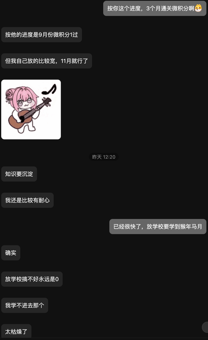 这其实也是我之前所担忧的问题,于是我又把 Math Academy 推荐给了一个数学底子较弱的朋友。