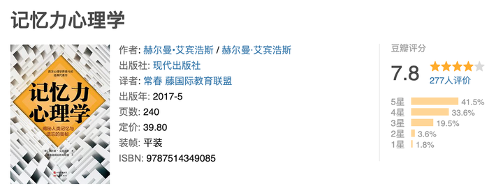 《记忆力心理学》的介绍里甚至没有提原版书的名字,这已经让我很奇怪了。没想到内容更是私货满满。自己瞎编了一个复习方法,然后冠上艾宾浩斯之名。
