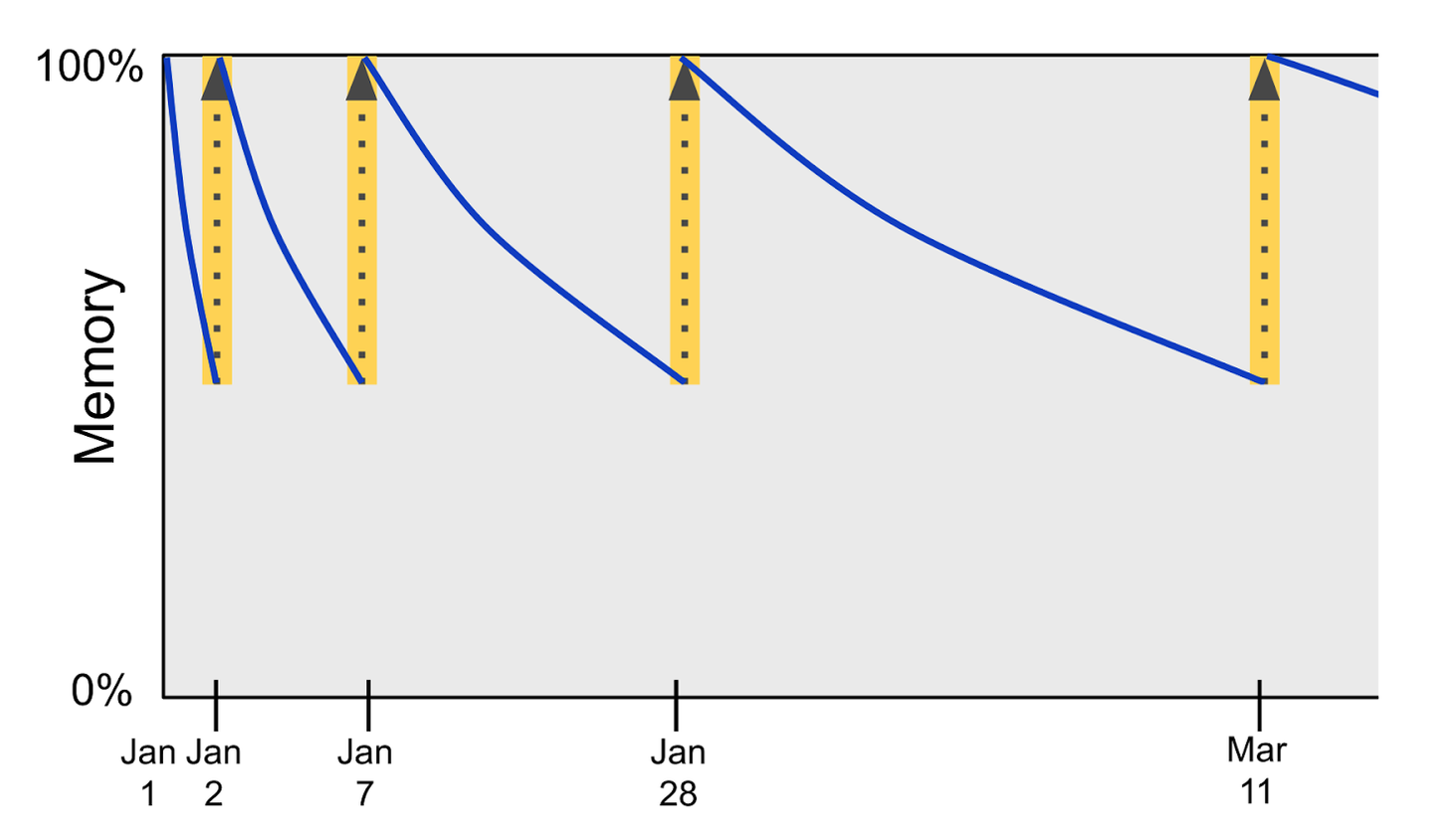 - 然而,倘若复习进行得太早,学生记忆强化的效果会打折扣,学习进度也会因此减缓。(这种情况并不理想,因为它效率低下:时间本应用于学习新知识主题,或复习那些确实已到复习期限的主题。)