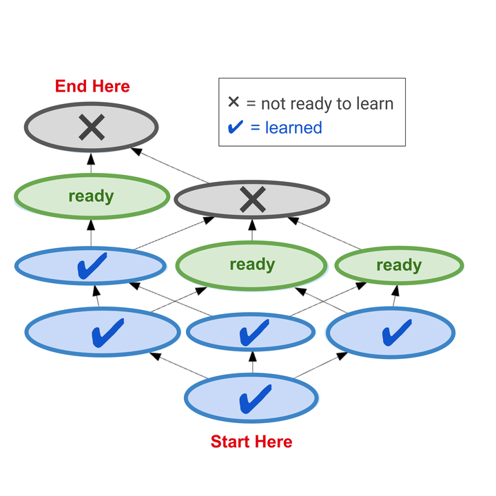 在精熟学习中,学生需要先证明自己已熟练掌握了前置知识,然后才能进入更高级知识主题的学习。