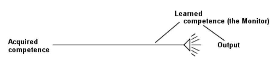 有意识的「学得」仅能作为「监控器」(Monitor)发挥作用,它可以在话语实际说出或写出之前或之后,对「习得系统」的输出进行调整。而正常的、流利的言语表达则是由「习得系统」所启动的。