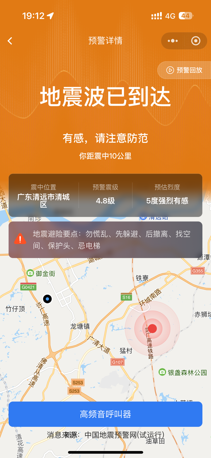 中国地震台网正式测定:06月23日18时48分在广东清远市清城区(北纬23.62度,东经113.17度)发生4.3级地震,震源深度10千米。