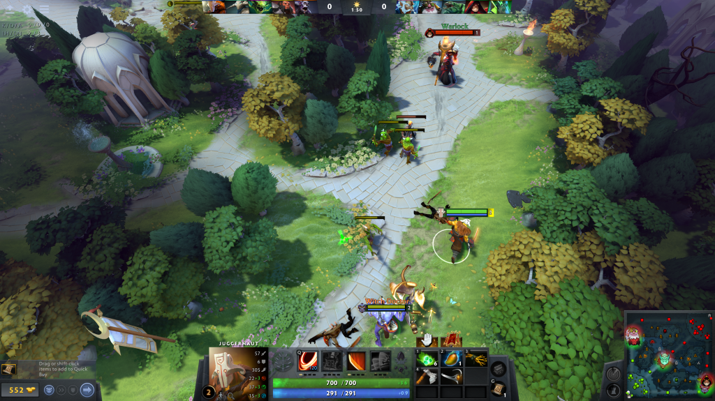 玩 Dota 的过程,就是不断被信息洪流冲击的过程。我需要时刻关注敌方小兵的血条以便精准补刀,否则就无法获得金钱;我需要观察己方小兵的血量以便及时反补,阻止对手获益;我需要追踪自己的金钱数量,以便在攒够钱的第一时间购买所需装备;我需要留意小地图,确保敌方队伍没有人前来偷袭(gank);我需要观察双方队伍英雄的生命值和魔法值,以寻找对方的薄弱环节或治疗己方的时机;我还可以点击敌方英雄查看他们的装备,判断其强弱,并据此做出应对。然而,这一切信息都可能是无关紧要的:或许屏幕上唯一重要的信息,就是顶部那个显示着游戏已进行 1 分 50 秒的计时器。