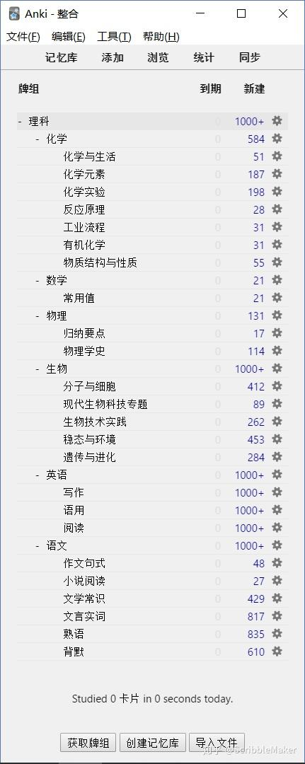 我当年用 Anki 制作了一万七千多张卡片,涉及语数英物化生所有我要学的科目: