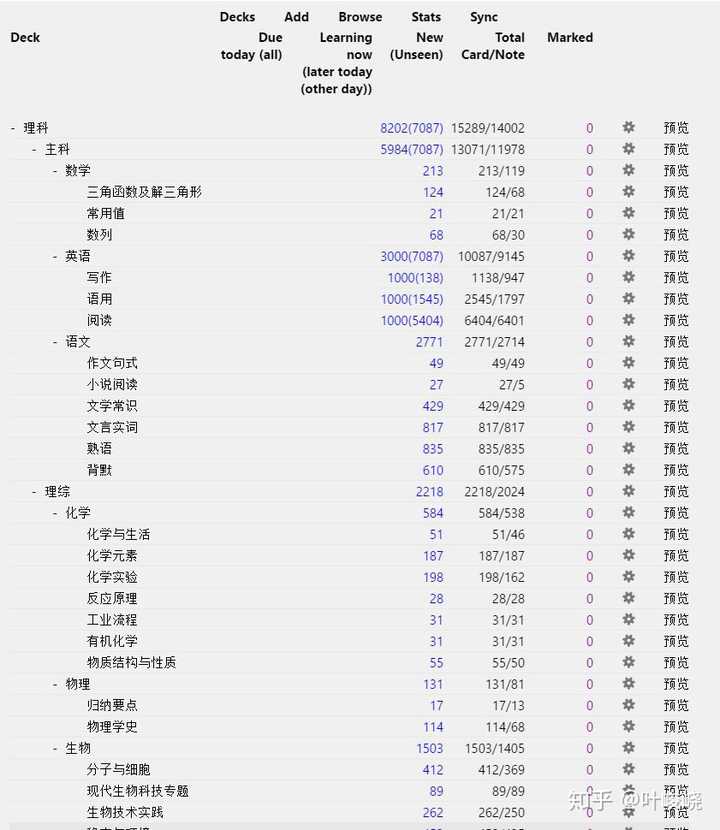 以下是 Anki 的界面图以及我的使用情况,请大家感受其中蕴含的科学原理。