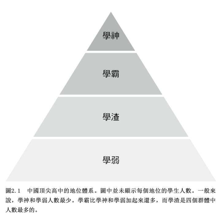 (第 75 页)正如小龙还有许多同学后来向我解释的那样,他们世界里的地位体系只有一个准则:考试分数决定地位。这条准则决定各个学校的地位,本部和国际部的学生都遵循这一个准则。因为他们相信考试分数决定升学结果,学生把考试成绩视为决定地位的因素,并将考试成绩与排名和大学录取结果交替使用。