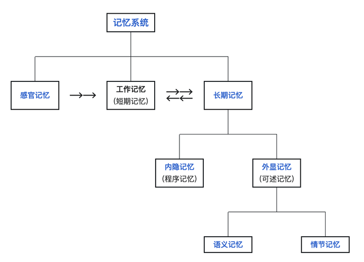 - 长期记忆:是容量巨大的「硬盘」,通过建立神经元之间的物理连接来存储信息。学习的本质就是在这里建立和强化这些连接,从而可以毫不费力地被提取。