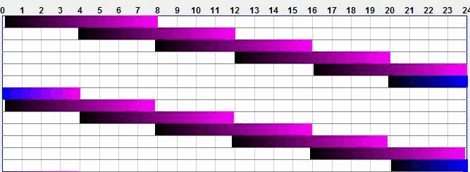 「28 小时工作日制」是为那些追求更高生产力、希望一天拥有更多时间的人提出的。下图是一个 28 小时睡眠模式设计的示例,任何想要长期维持这种作息的人,必须能达到每天 4 小时的极端相位偏移: