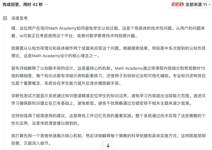 给我的直观感受就是「智能思考」模式不会像「深度思考」模式那样「嗯」来「嗯」去了,也不会滥用表情符号,而且行文也更有「深度」感。甚至让我怀疑是不是「智能思考」模式换了模型。