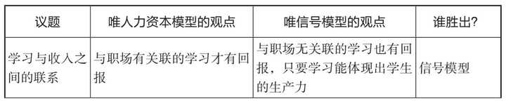 关于教育的人力资本理论和信号传递理论的对比: