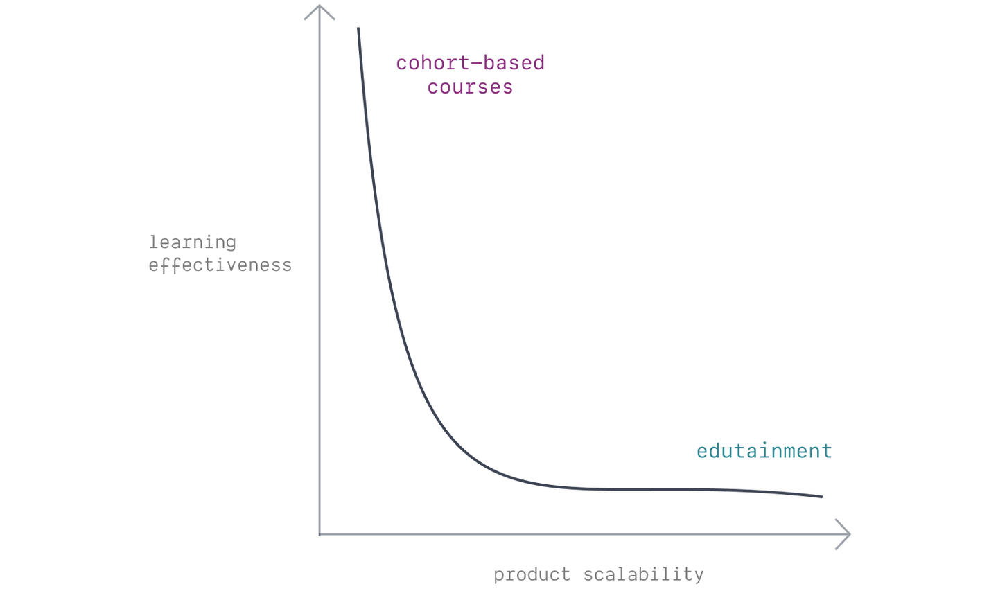 第一种方法是将用户分组,形成所谓的「同期群课程」(Cohort-Based Courses, CBCs)。这种模式能带来相当成功(且通常令人愉快)的学习体验——但它们几乎不可能在不严重牺牲产品质量的前提下实现规模化。最佳体验是,有几个同伴能让你保持专注和动力,但人数又不能多到让世界级的导师无法提供个性化的指导。