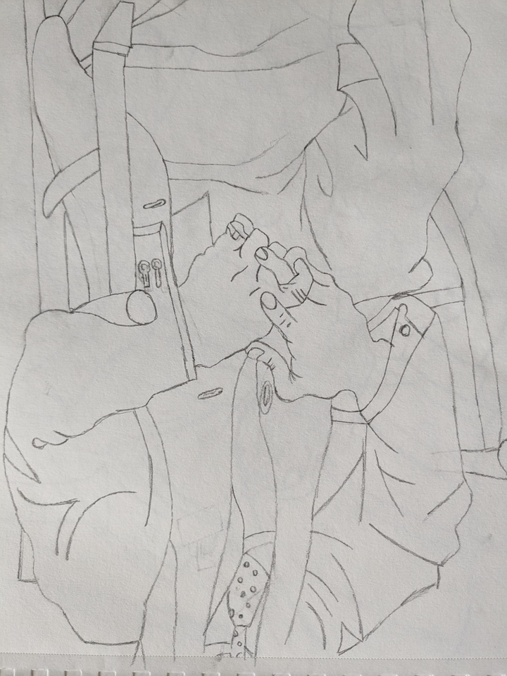 这幅画在当时就已经是我这辈子画得最好的一幅了,但显然还有很多欠缺的地方。接着,书中提供了其他一些理论和练习。第一个练习,是让你用肉眼看着一幅画,顺着里面的线条把它临摹下来,而且如果我没记错,它还要求把画倒过来临摹。
