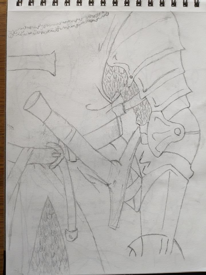 我画出来的这幅画,其实和原作几乎一模一样。到这里,我实际上也只画过两幅画,也没进行偷偷私下练习那些我原以为至关重要的绘画基本功。后来,在朋友家帮他看狗的时候,我又决定再临摹两幅(这次是从网上找的)。可能你会发现,这两幅都带有浓厚的奇幻宅男风。毕竟,说到底我是个非常符合刻板印象的程序员。