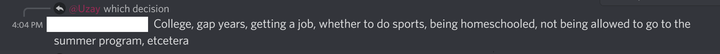 XX:读哪所大学、要不要过间隔年、找什么工作、练什么体育项目、要不要在家自学、能不能参加暑期项目等等……凡是能想到的,全都是他们定的。