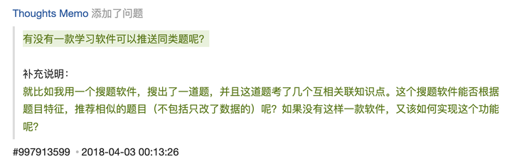 我当时就在想,有没有办法我做一道题,做得不够熟练,能够多做几道同类题来提升熟练度(反复做同一道错题只会过拟合)。但是搜了很多关键词,都没有找到类似的应用,所以就在知乎上提了这个问题。