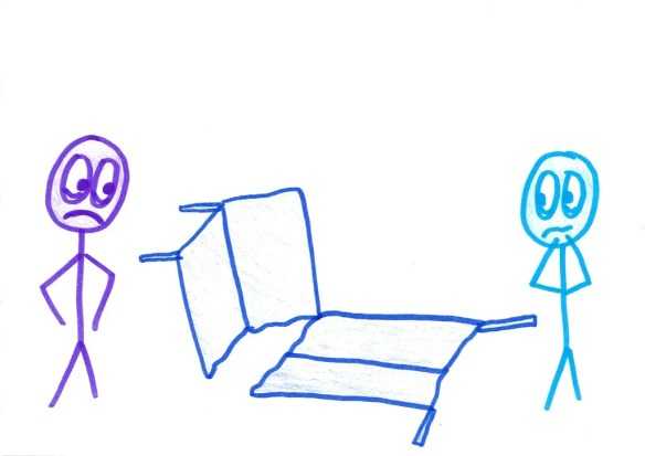 他们刚上到三楼平台,就听到了一声断裂的脆响。一根沙发床上的小金属条折断了。我们都仔细检查了一番,但甚至搞不清楚这块零件是从哪掉下来的。不过既然沙发床看起来没问题,我们就耸耸肩,抛问题于脑后了。