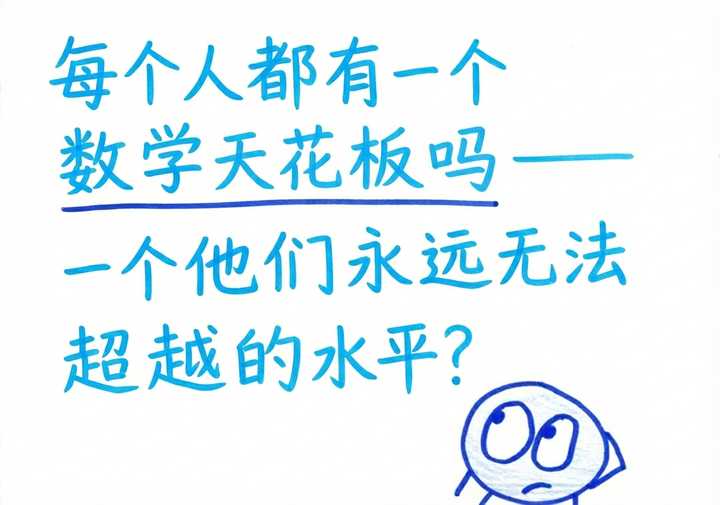 现实:如果你在数学课上表现得很糟糕,并不一定意味着你无法学会这个等级的数学。可能有多种原因导致你的艰难。虽然每个人的数学潜力确实有其上限,但我们所遇到的瓶颈往往并不代表我们真正的、如 Hofstadter 所描述的那种「抽象天花板」。各种因素可能会人为地降低我们的天花板,比如基础知识缺失、练习习惯不佳、无法或不愿意进行额外练习,或缺乏动力。