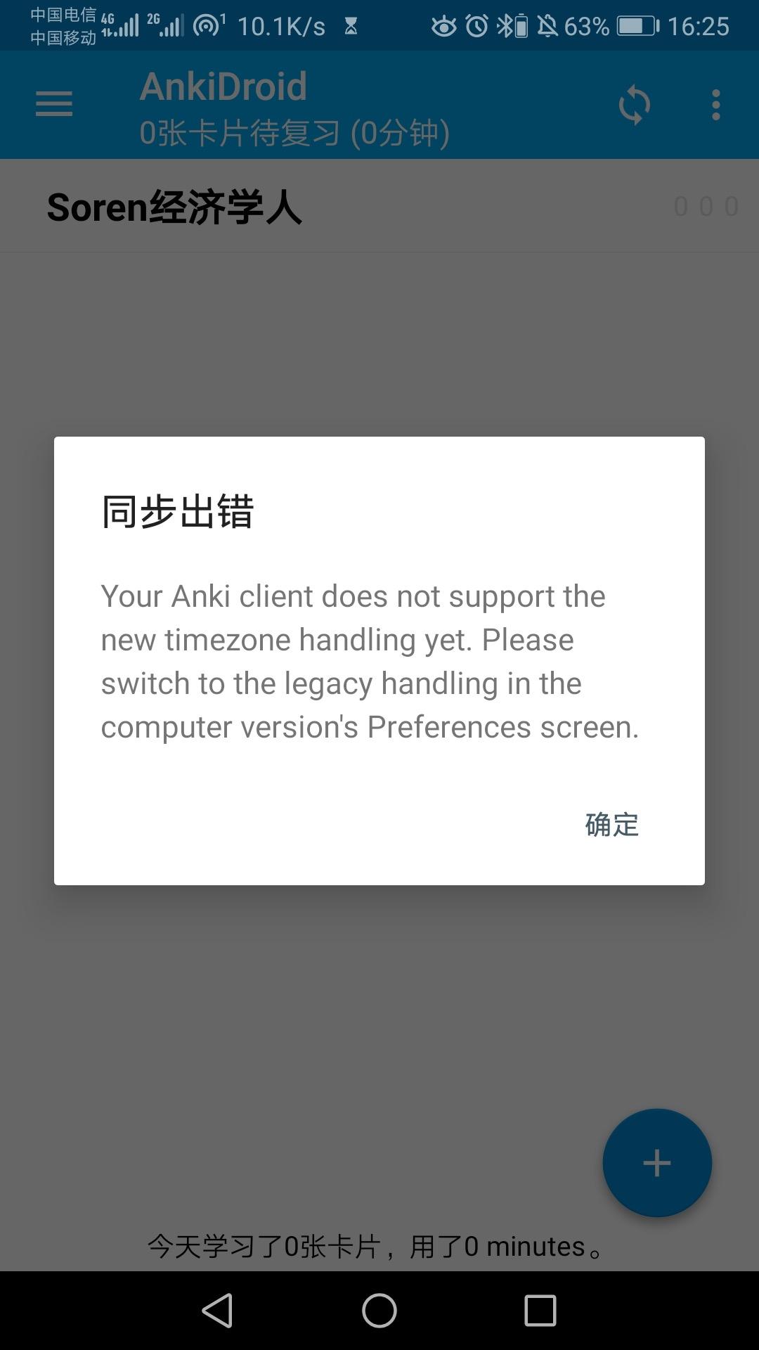 我的anki安卓端(在anki China网页里下载的2.10alpha46版本的)无法实现与iPad端的同步,具体显示问题如下