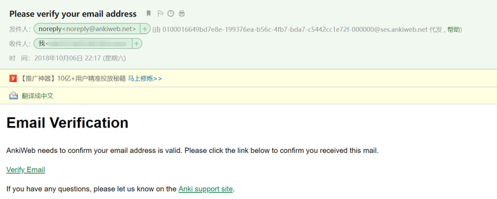 去 qq 邮箱里找找 anki 发给你的邮件吧: