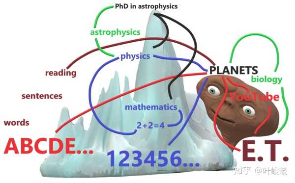 图:童年的激情可能从一部 ET 电影,通过 YouTube 和行星,到达不同的科学分支。他们可能最终获得天体物理学博士学位和科学生涯。在路上,孩子可以学习字母表、阅读技巧、代数和其他必要的基础知识。知识之路是以探索性学习为基础的。这种快乐从童年开始,最理想的是一直持续到退休年龄。