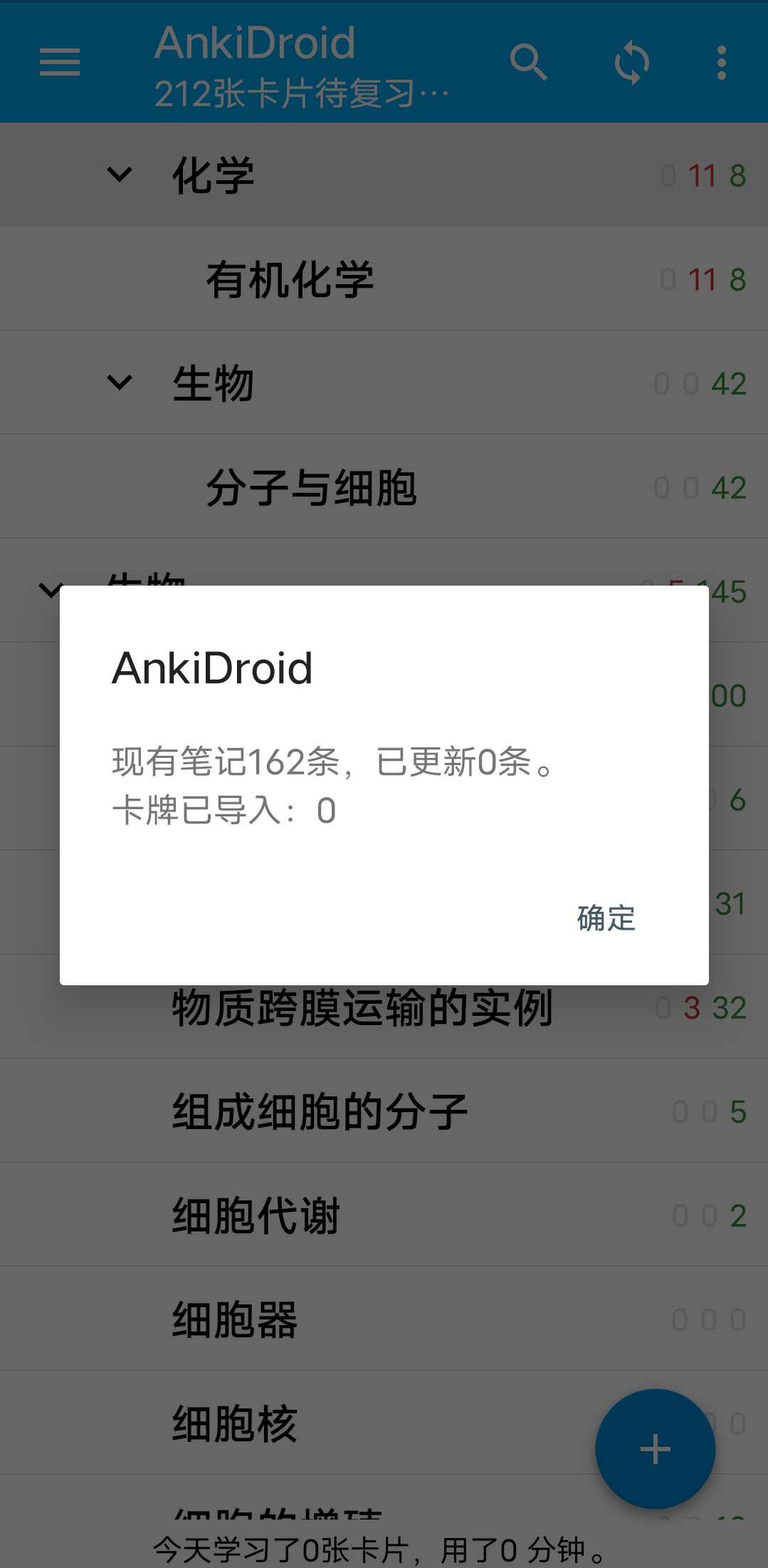 我猜是你导入的内容和之前已有的内容重复了,所以你应该看看之前的目录里面是不是就有这些卡片了。