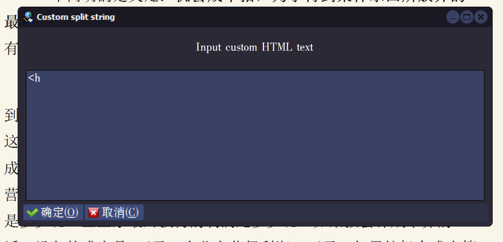 然后,输入<h,点击确定,就可以把这篇文章按照各级标题分割了。